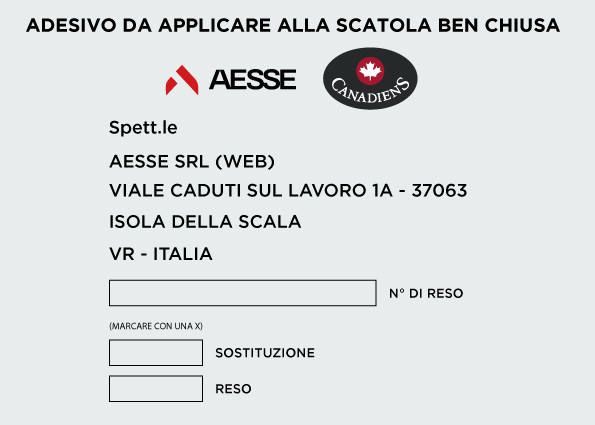 4. Contattaci alla mail staff@aesse.com o chiamaci allo 045 663 0555. Un nostro operatore risponderà alla sua richiesta per ultimare la "sostituzione” o il “reso”